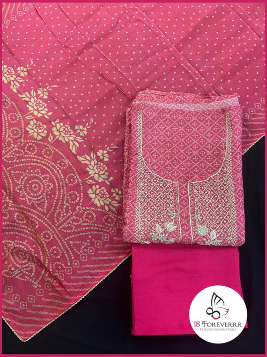 Bandhani Unstitched Suit with Embroidery